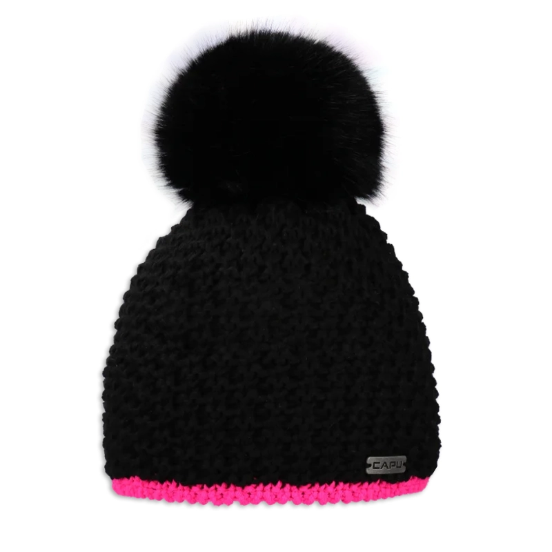 • Dámská čepice s černou kožešinovou bambulí