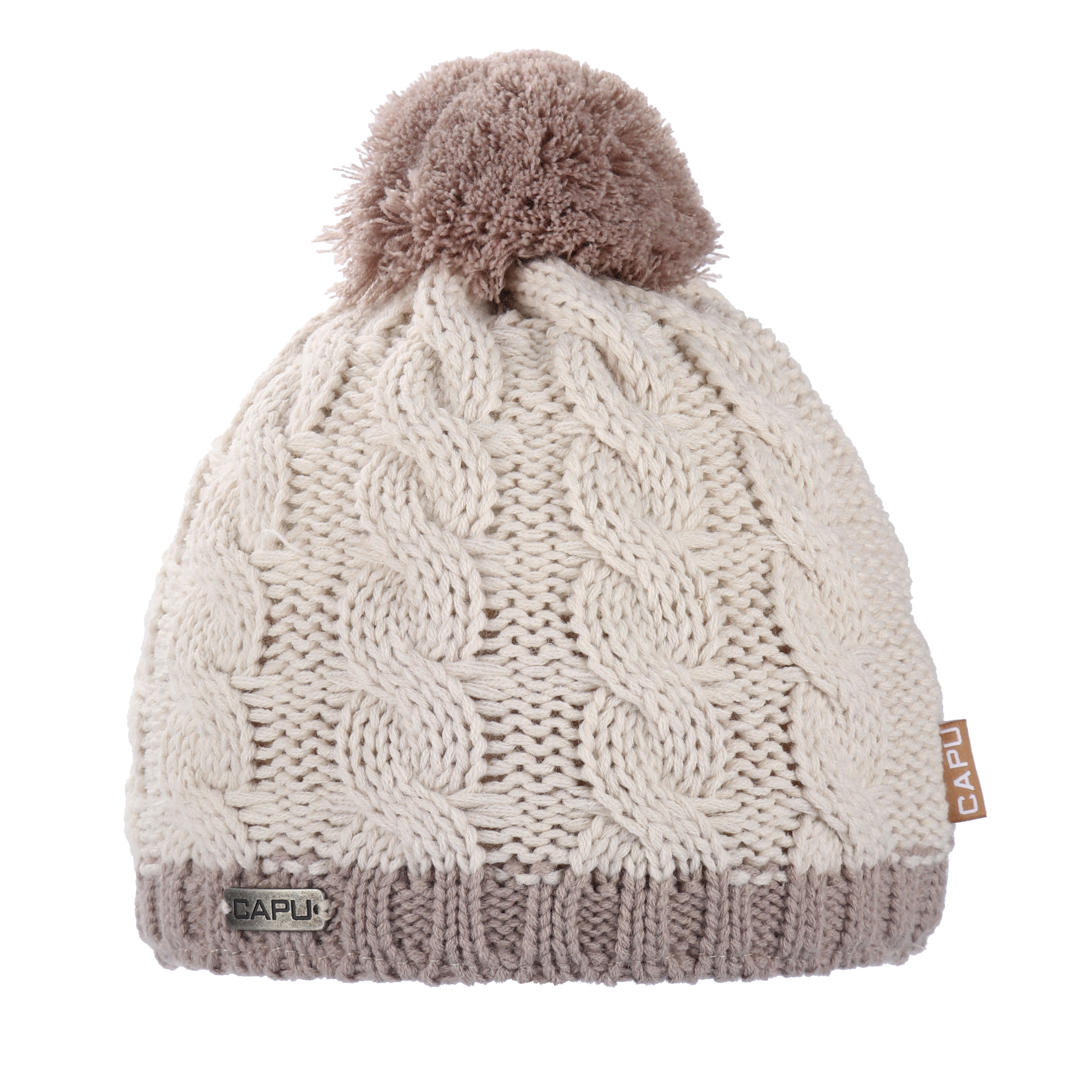 Dámská zimní pletená čepice – zateplená flízem, akrylová bambule