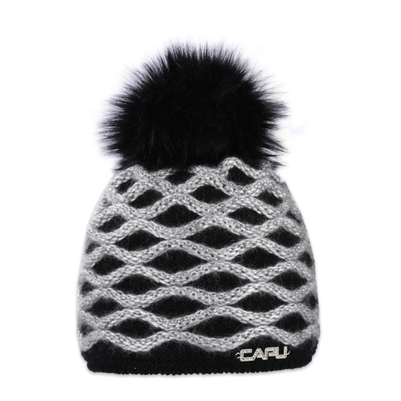• Dámská čepice s černou kožešinovou bambulí