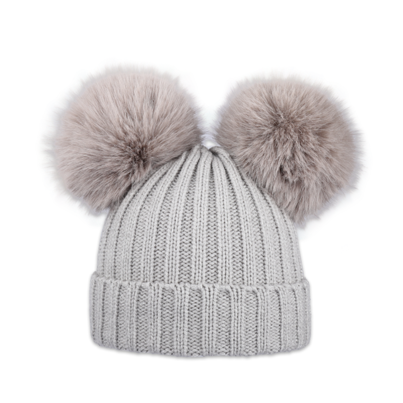 • Dámská čepice s dvěma kožešinovými bambulemi