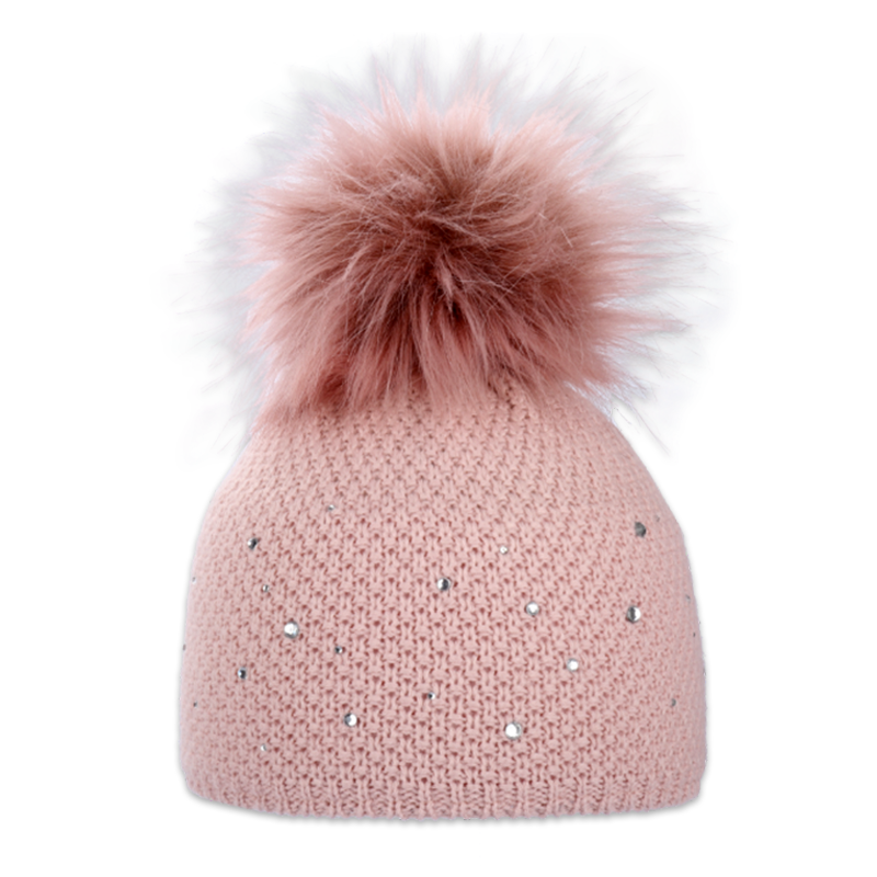 Dámská čepice s kožešinovou bambulí s kamínky