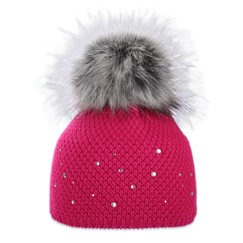 • Dámská čepice s kožešinovou bambulí s kamínky