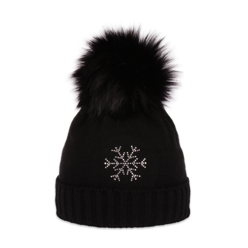 Dámská čepice s kožešinovou bambulí s vločkou z kamínků