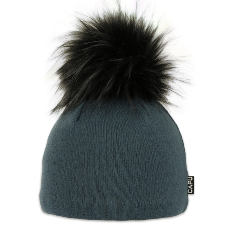 • Dámská čepice s kožešinovou bambulí modrá