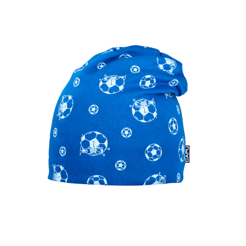 Dětská bavlněná jarní čepice s fotbalovým míčem, modrá, přepadlá – podšitá flízem, velikost 46-48 cmSkladem159 Kč/ ks131 Kč bez DPH