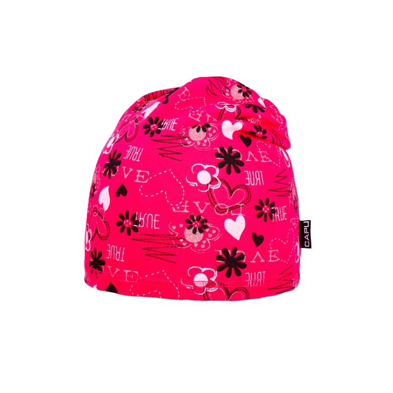 Dětská bavlněná jarní čepice se srdíčky přepadlá růžová – tenká jednovrstvá, velikost 52-54 cm