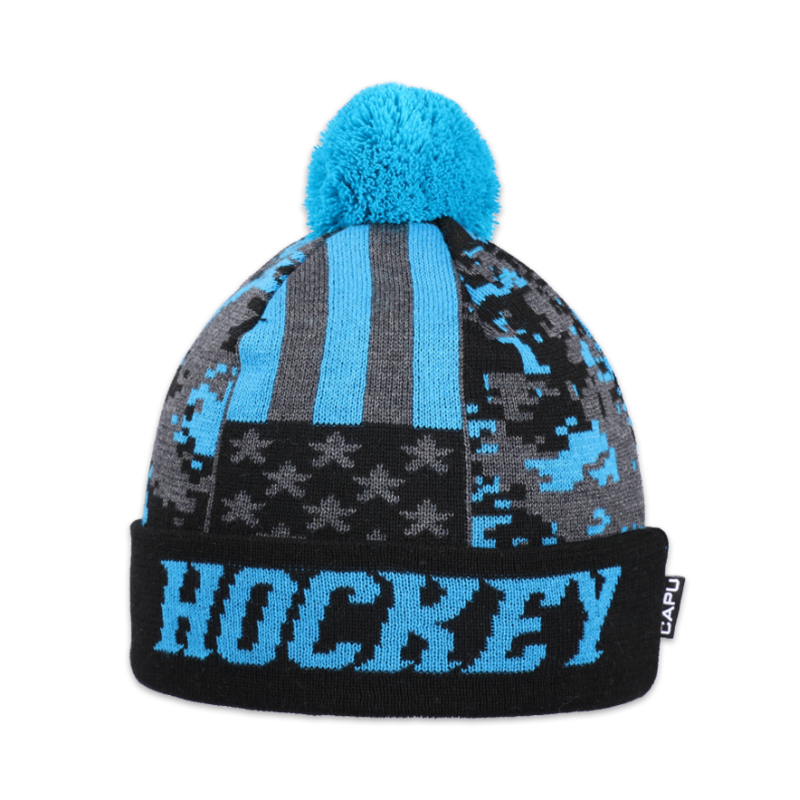 Dětská čepice s akrylovou bambulí hokej