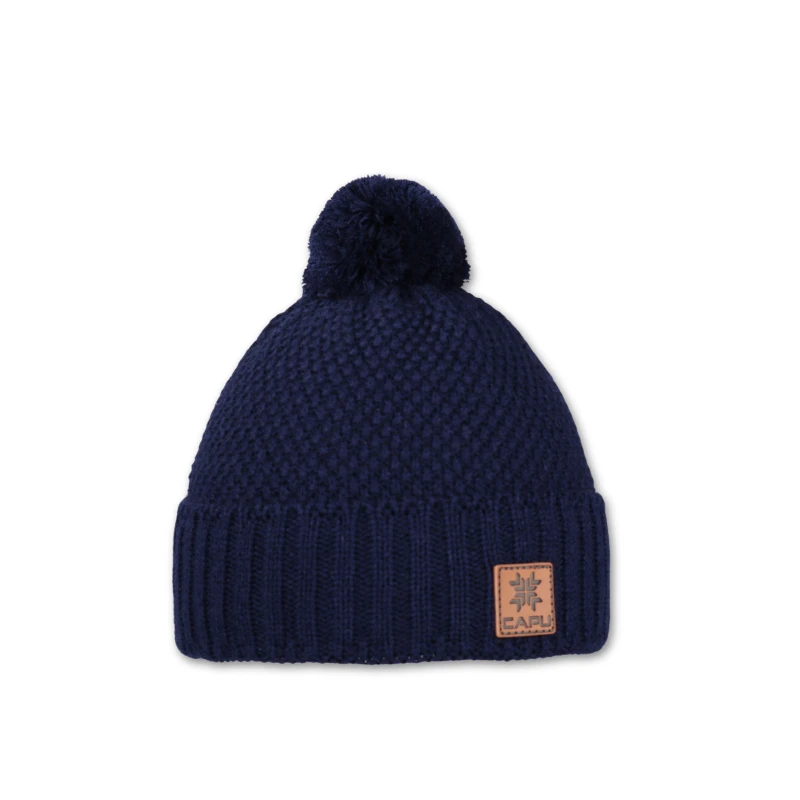 • Dětská čepice s akrylovou bambulí - tmavě modrá