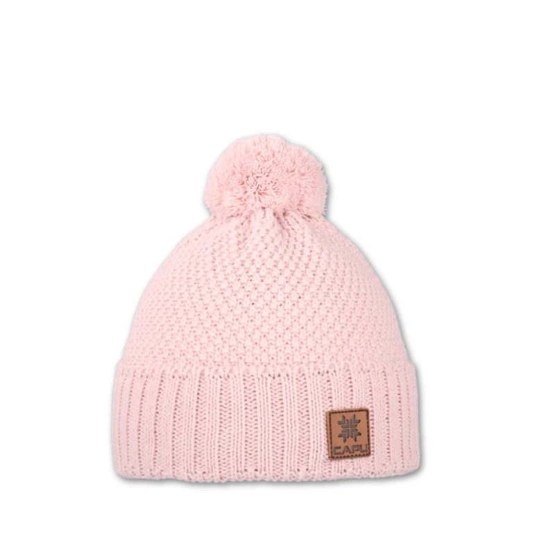 • Dětská čepice s akrylovou bambulí - světle růžová