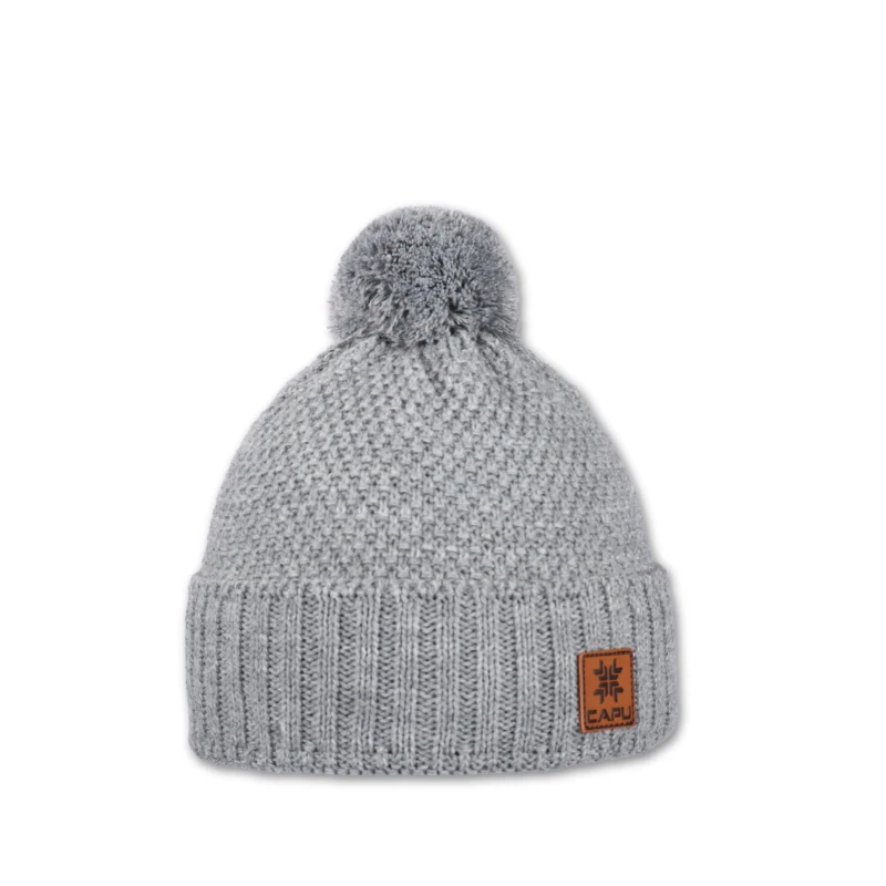 • Dětská čepice s akrylovou bambulí - šedá
