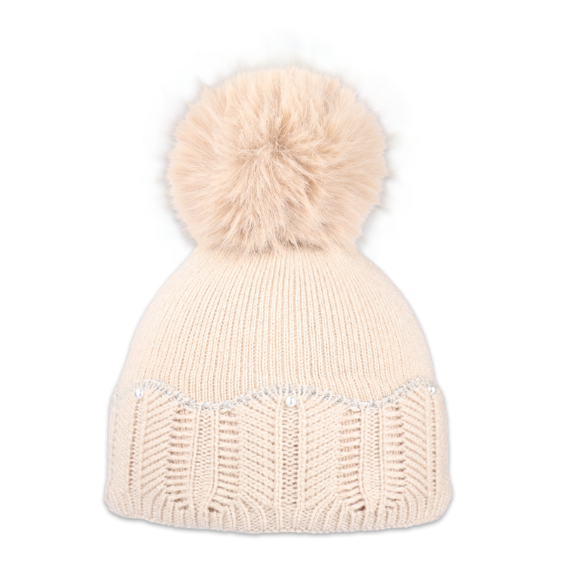 • Dětská čepice s kožešinovou bambulí a perličkami
