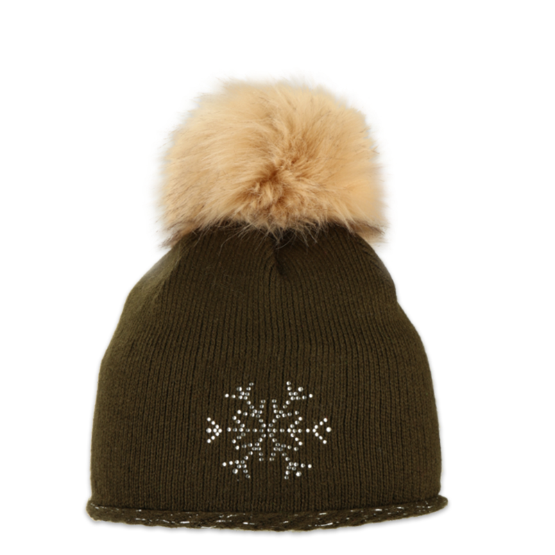 • Dětská čepice s kožešinovou bambulí s vločkou z kamínků