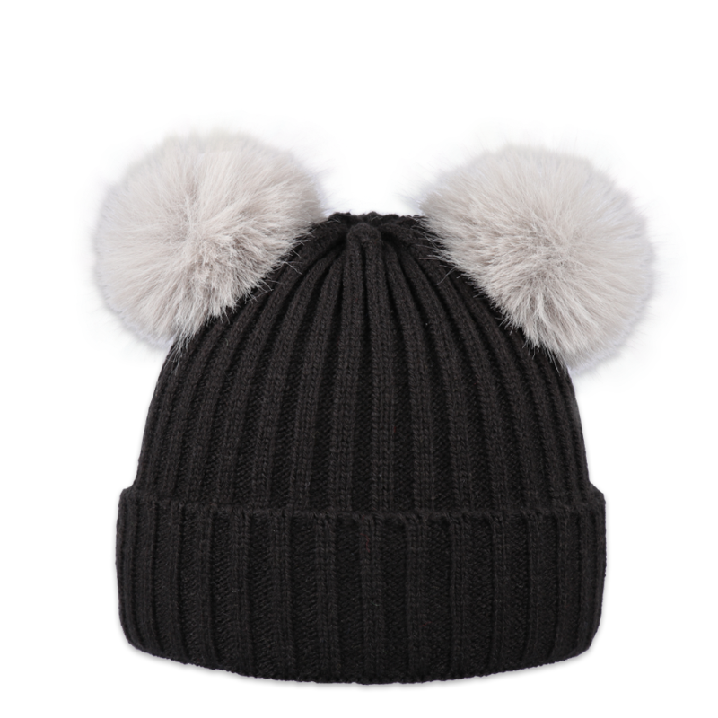 • Dětská čepice se dvěma kožešinovými bambulemi