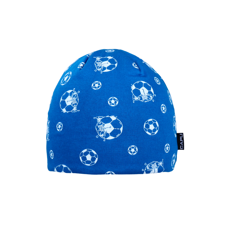 Dětská bavlněná jarní čepice s fotbalovým míčem, modrá – tenká jednovrstvá, velikost 46–48 cmSkladem159 Kč/ ks131 Kč bez DPH
