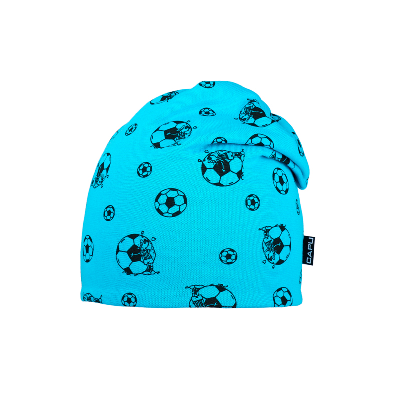 Dětská bavlněná jarní čepice s fotbalovým míčem, modrá, přepadlá – podšitá flízem, velikost 52–54 cmSkladem159 Kč/ ks131 Kč bez DPH