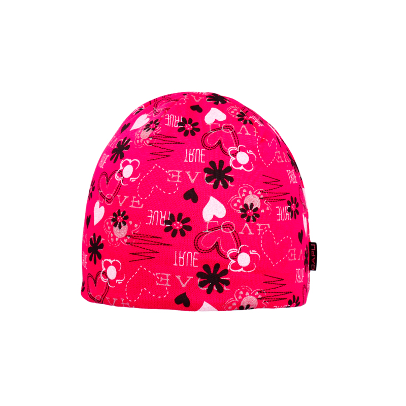 Dětská bavlněná jarní čepice – srdíčka, růžová, podšitá flízem (50–52 cm)