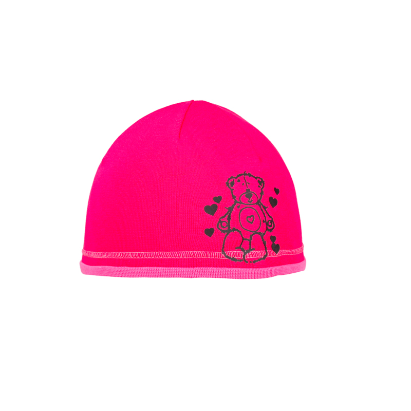 Dětská bavlněná jarní čepice s medvídkem růžová – tenká jednovrstvá (48–52 cm)