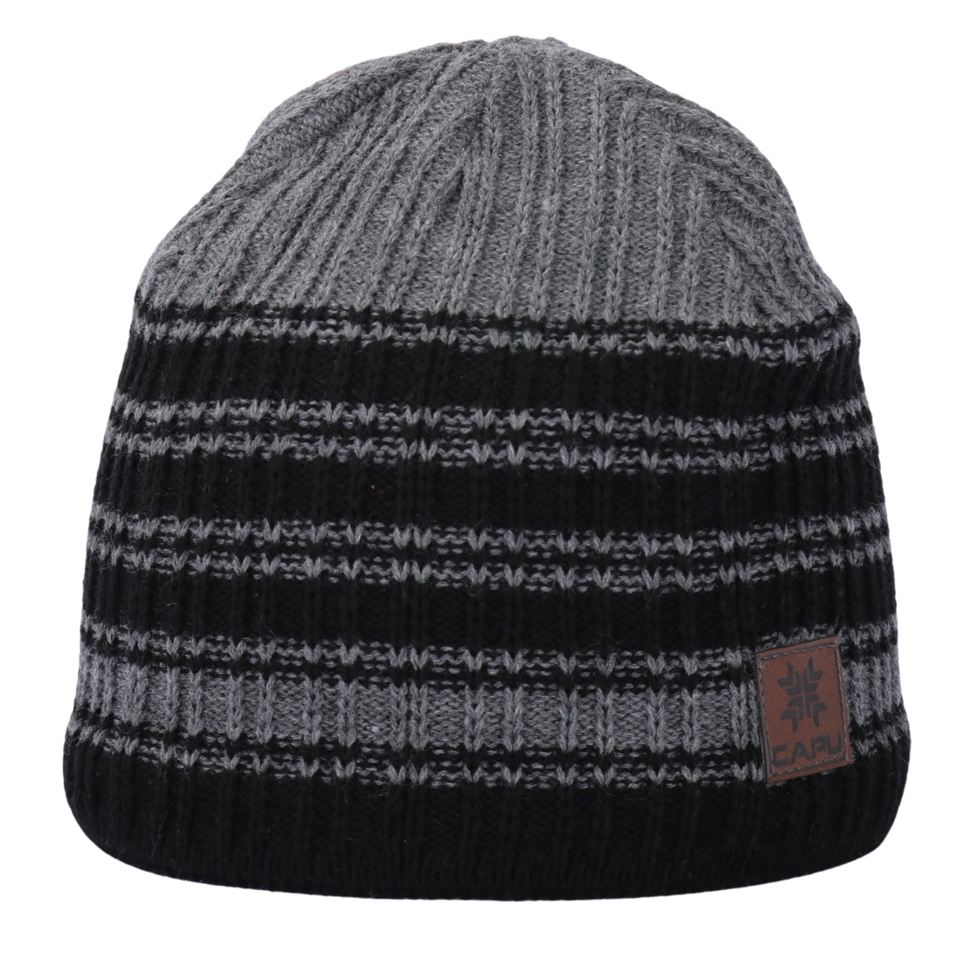 Pánská zimní pletená čepice zateplená flízem černá šedá